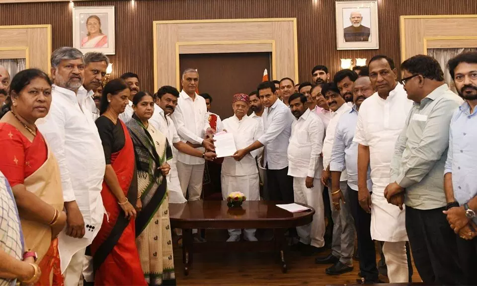 భారాస కార్యనిర్వాహక అధ్యక్షుడు కేటీఆర్ నేతృత్వంలో పార్టీ సీనియర్ నేత హరీశ్ రావు, ఎమ్మెల్యేలు, ఎమ్మెల్సీలతో కలిసి సోమవారం లోక్భవన్లో గవర్నర్ను కలిసి వినతిపత్రం అందజేశారు. ఈ భేటీ గంటకు పైగా కొనసాగింది.