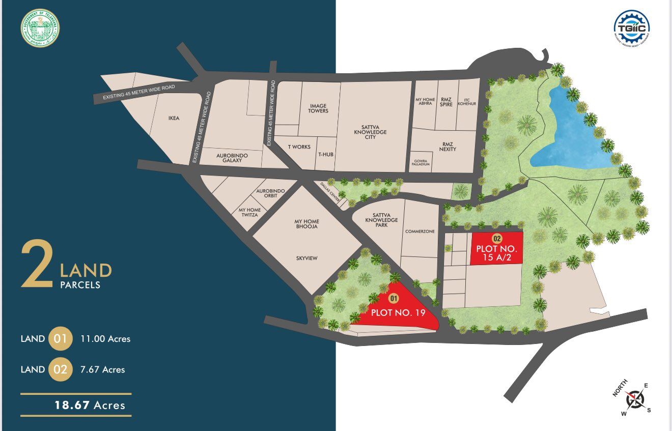 సర్వే నంబరు: 83/1, ప్లాట్ నంబరు 19 (11 ఎకరాలు), ప్లాట్ నంబరు 15ఎ/2 (7.67 ఎకరాలు)