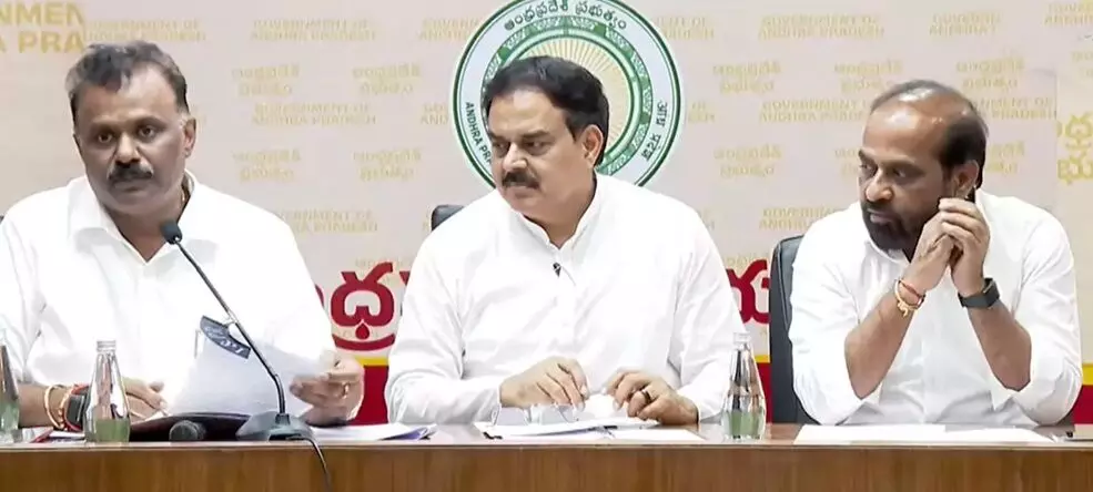 AP Cabinet Decisions: రాష్ట్ర మంత్రివర్గ సమావేశంలో 24 ముఖ్య అంశాలపై చర్చించి, అన్నింటినీ ఆమోదించినట్లు మంత్రి అనగాని సత్యప్రసాద్ ప్రకటించారు. ఈ నిర్ణయాలను మంత్రులు నాదెండ్ల మనోహర్, సత్యకుమార్తో కలిసి వెల్లడించారు. సామాజిక సంక్షేమ శ్రేణులకు రుణాల భారాన్ని తగ్గించేందుకు ప్రత్యేక చర్యలు తీసుకున్నామని, ప్రభుత్వ కార్యాలయాల్లో స్మార్ట్ మీటర్లు ఏర్పాటు చేసేందుకు అనుమతి ఇచ్చామని తెలిపారు. ప్రజల నుంచి వచ్చిన ఫిర్యాదులు, సూచనల ఆధారంగా జిల్లాల విభజనలో కొన్ని మార్పులు, చేర్పులు చేశామని చెప్పారు. 9 జిల్లాల్లో ఎలాంటి సవరణలు చేయలేదని, మిగిలిన 17 జిల్లాల్లో పరిమిత మార్పులు మాత్రమే తీసుకున్నామని వివరించారు. ప్రజల కోరికలకు అనుగుణంగా మండలాలు, డివిజన్ల సర్దుబాట్లు చేశామని, మునుపటి ప్రభుత్వం పారదర్శకత లేకుండా జిల్లాలను విభజించడం వల్లే ఇటీవలి సమస్యలు తలెత్తాయని మంత్రులు విమర్శించారు.