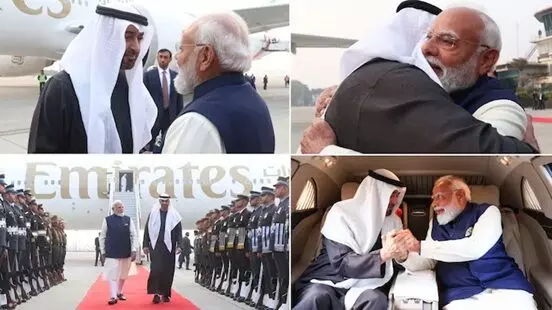 PM Modi: యునైటెడ్ అరబ్ ఎమిరేట్స్ (యూఏఈ) అధ్యక్షుడు షేక్ మహమ్మద్ బిన్ జాయెద్ అల్ నహ్యాన్ భారత్కు అధికారిక పర్యటనకు రాగా, ప్రధాని నరేంద్ర మోదీ వారు ఎయిర్పోర్టుకు వెళ్లి స్వయంగా హార్దిక స్వాగతం పలికారు. ఇది ఇరు దేశాల మధ్య ఉన్న బలమైన సోదర భావన, స్నేహ సంబంధాలకు ప్రతీకగా నిలిచింది.
