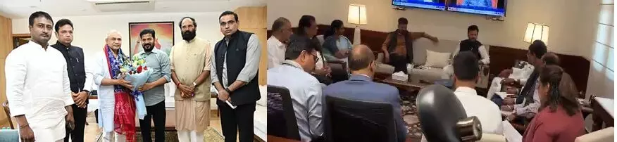 CM Revanth Reddy’s Delhi Visit: తెలంగాణ ముఖ్యమంత్రి రేవంత్రెడ్డి దిల్లీ పర్యటనలో భాగంగా కేంద్ర మంత్రులు కిషన్ రెడ్డి, రామ్మోహన్ నాయుడు, అశ్వినీ వైష్ణవ్లతో సమావేశమయ్యారు. రాష్ట్ర అభివృద్ధికి సంబంధించిన పలు అంశాలపై వారితో చర్చలు జరిపారు. ముఖ్యంగా విమానాశ్రయాల నిర్మాణం, రైల్వే ప్రాజెక్టులపై దృష్టి సారించారు.