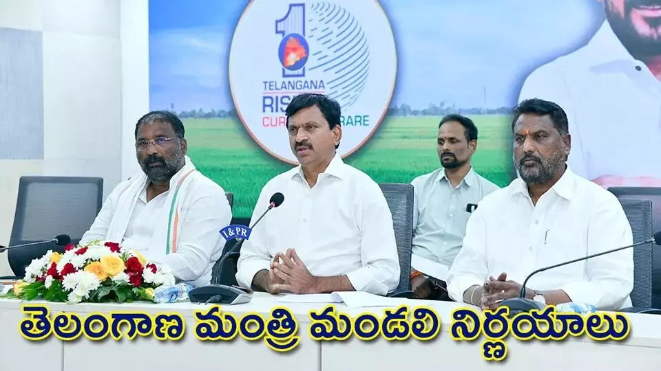 Telangana Cabinet: ముఖ్యమంత్రి ఎ. రేవంత్ రెడ్డి అధ్యక్షతన డాక్టర్ బీ.ఆర్. అంబేడ్కర్ తెలంగాణ రాష్ట్ర సచివాలయంలో సోమవారం జరిగిన మంత్రివర్గ సమావేశంలో పలు ముఖ్యమైన నిర్ణయాలు తీసుకున్నారు. సుమారు 5 గంటల పాటు సాగిన ఈ సమావేశంలో రాష్ట్ర ఉద్యోగులు, పెన్షనర్లకు ఆదర్శవంతమైన రెండు కొత్త పథకాలకు ఆమోదం తెలిపారు. మంత్రి పొంగులేటి శ్రీనివాస రెడ్డి, వాకిటి శ్రీహరి, అడ్లూరి లక్ష్మణ్ కుమార్లతో కలిసి మీడియా సమావేశంలో ఈ వివరాలను వెల్లడించారు.